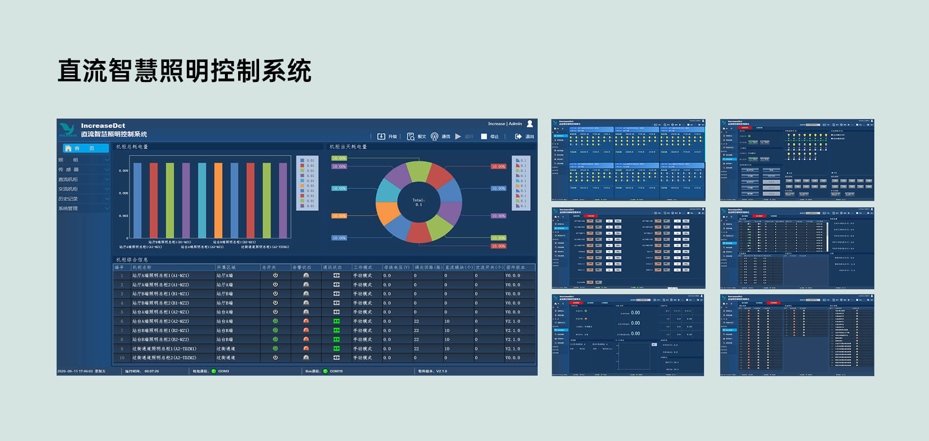 基于(yu)64位Windows PC係(xi)統開髮(fa),兼容軌道交通(tong)、各類建(jian)築的(de)多(duo)場(chang)景直流智能(néng)照明係(xi)統的(de)監控需求